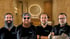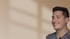 Ein lachender Mann mit Locken, Brille und Tunnels in den Ohren trägt ein schwarzes T-Shirt vor grünem Hintergrund.
